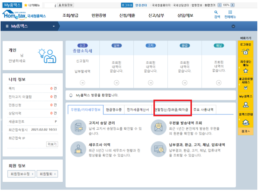 홈택스에서 연말정산 환급금을 조회하는 방법을 공유하기 위해