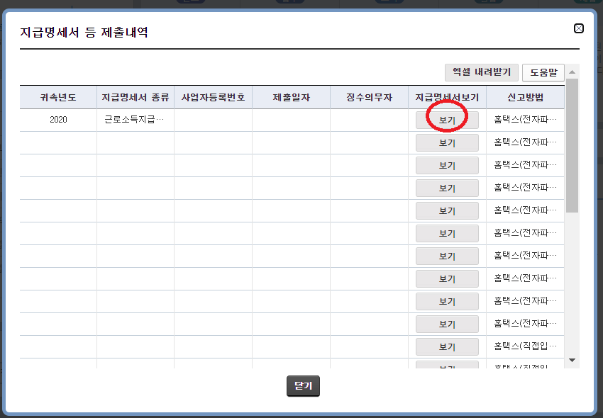 지급명세서등 제출내역을 눌러줍니다.