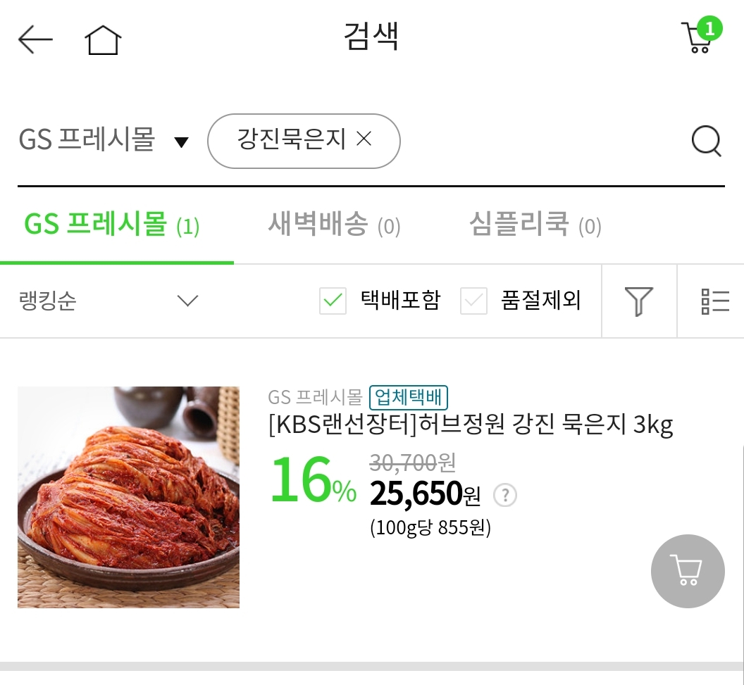 소스앱 사용하는건 실시간 live때만 해당되는거 같은데 지금은 어플 내에서 강진 묵은지를 찾아보기가 힘들더라구요.