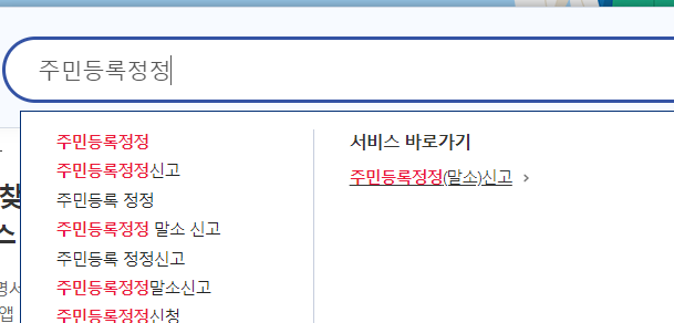 : 정부24홈페이지-주민등록정정(말소)신고-주소이전-세대주 확인