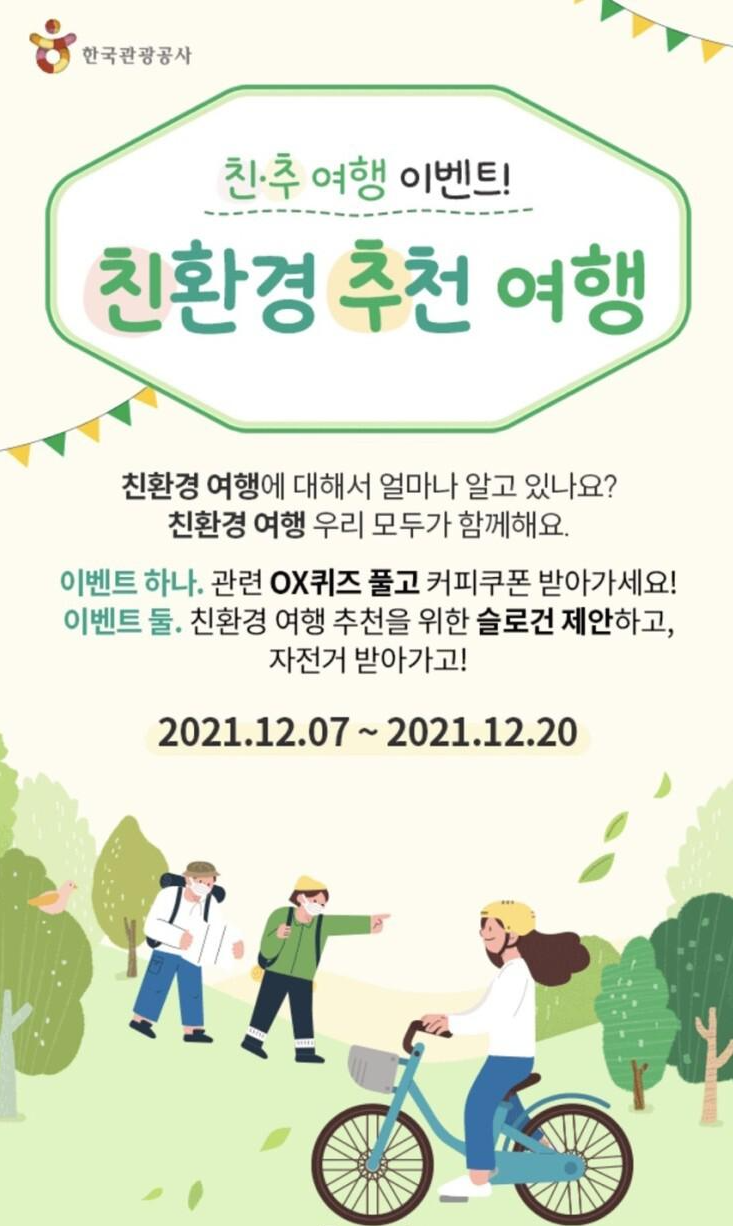 한국관광공사 친환경 여행 추천 이벤트가 있어 공유드립니다.