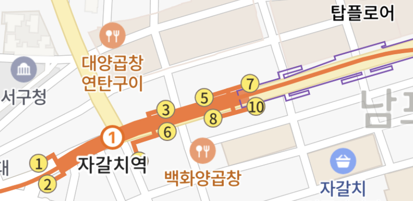 남포역1번출구, 자갈치역7번출구로 가실 수 있습니다