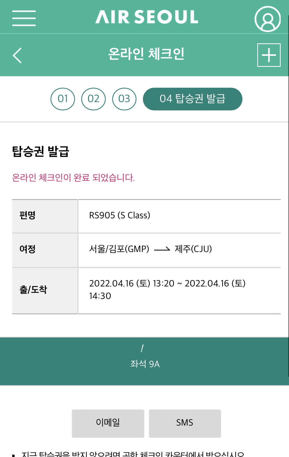 이메일이나 문자로 탑승권을 받으실 수 있습니다