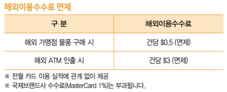 -본 카드에 한해 해외 이용수수료가 면제