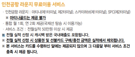 (단, 인천공항 라운지 무료이용 서비스는 카드수령 등록일로부터