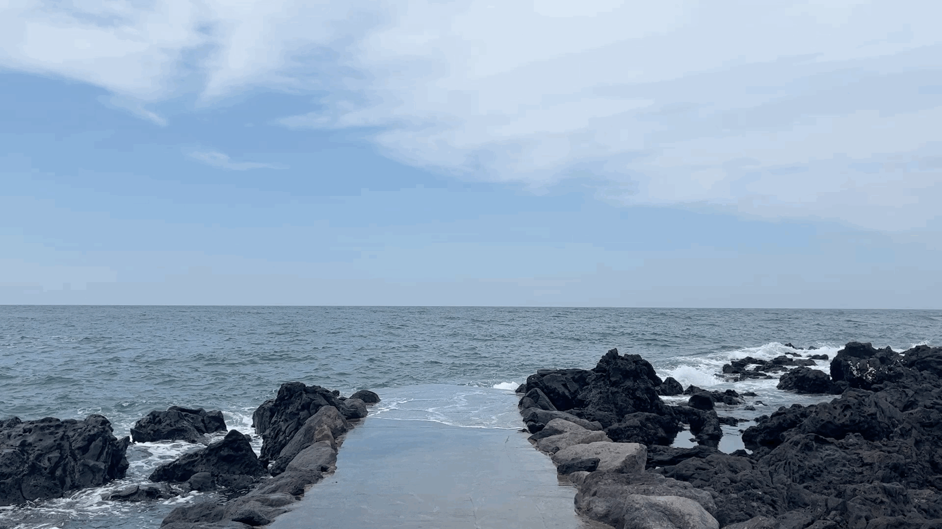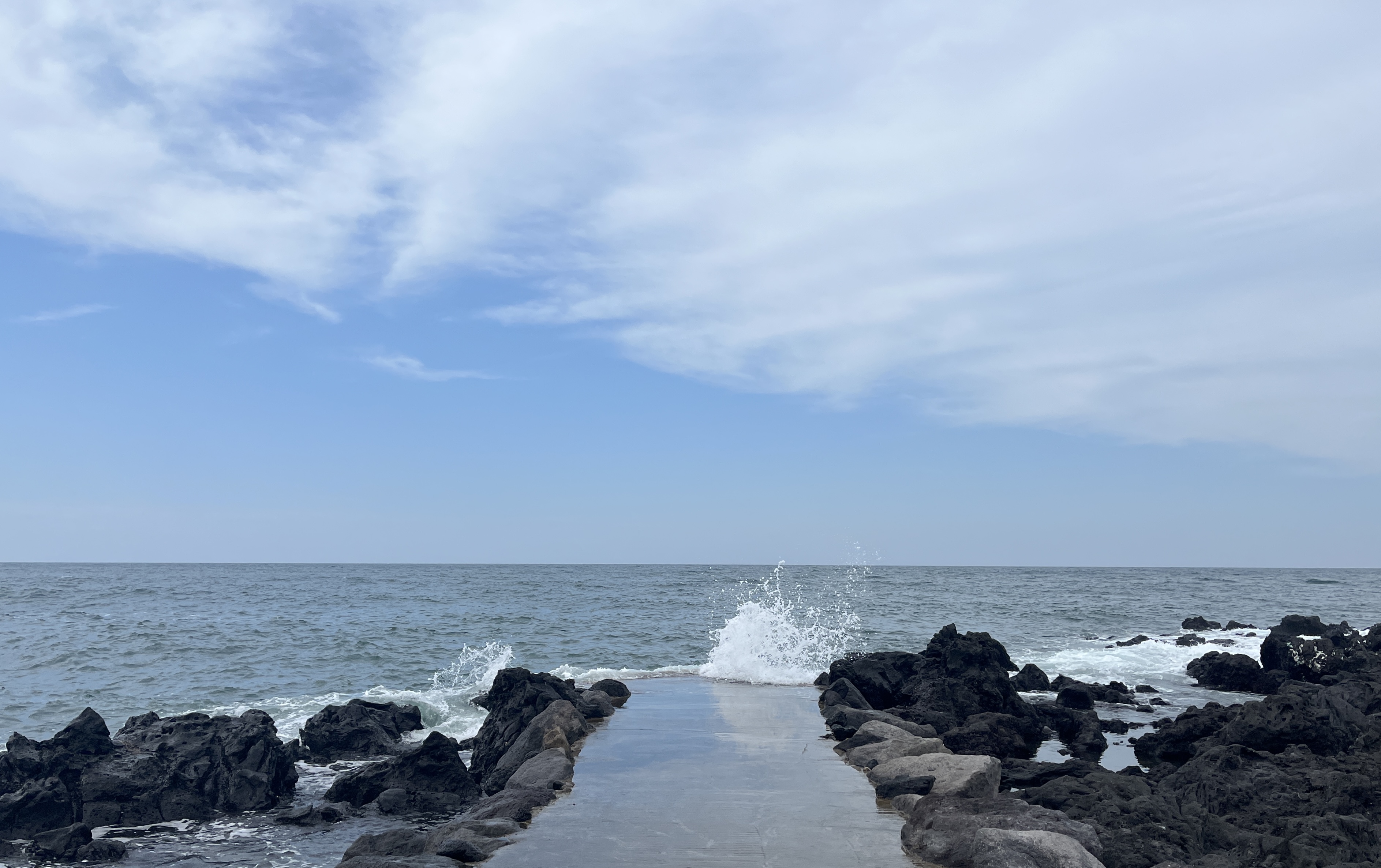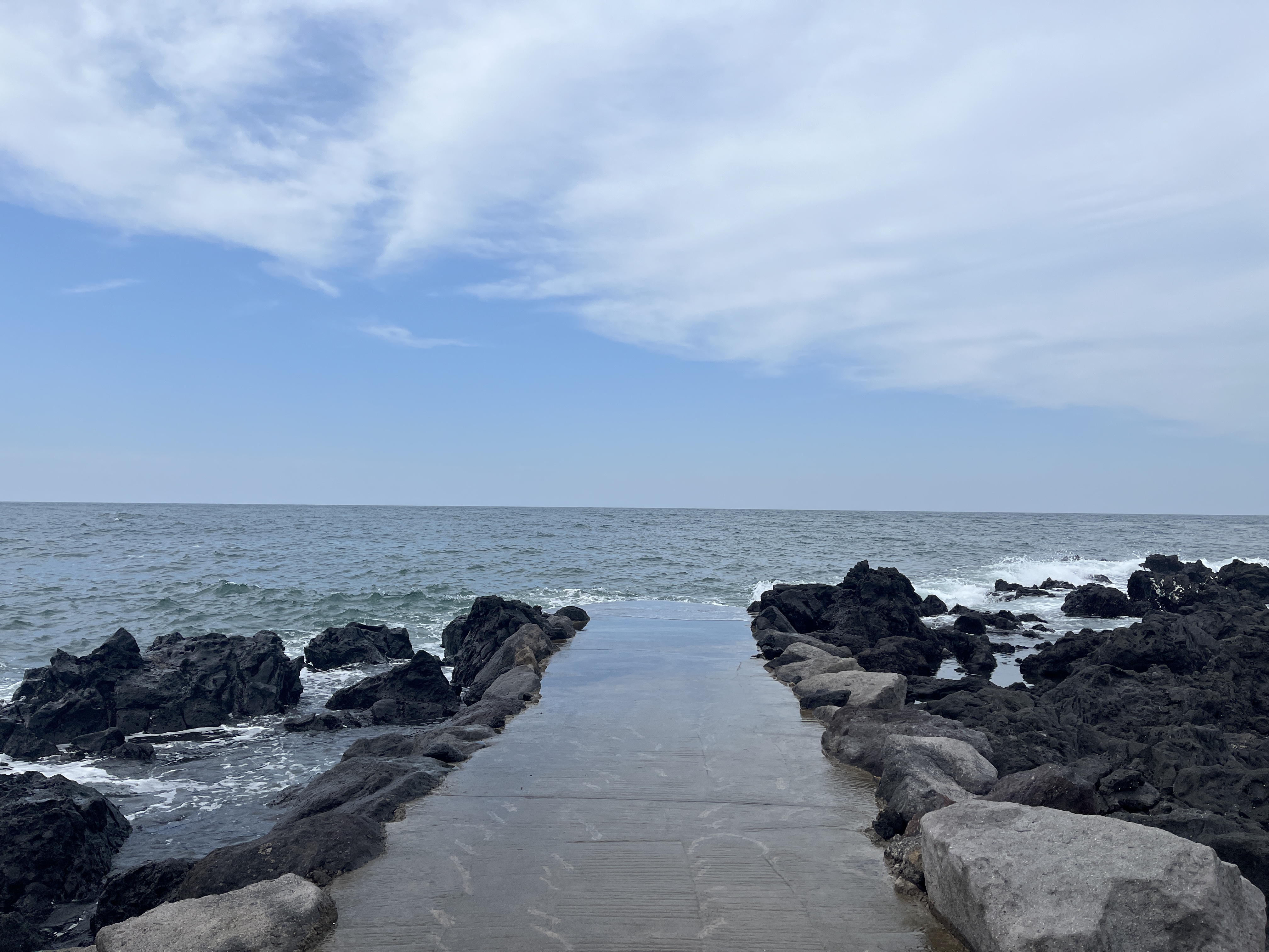 길 위로 바닷물이 올라오는데 그위로 하늘이 반사되서 예뻤다.