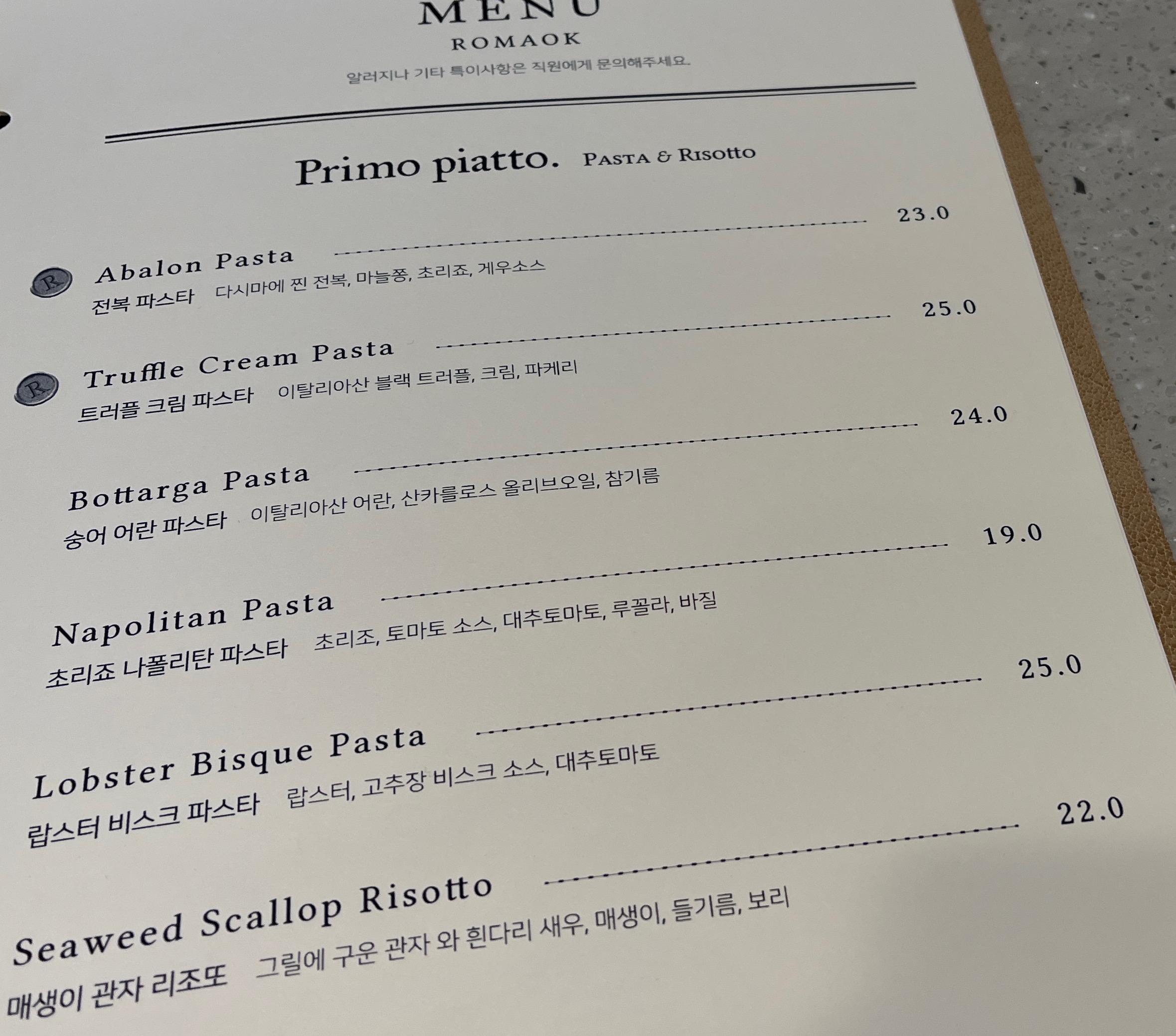 전복파스타 23,000