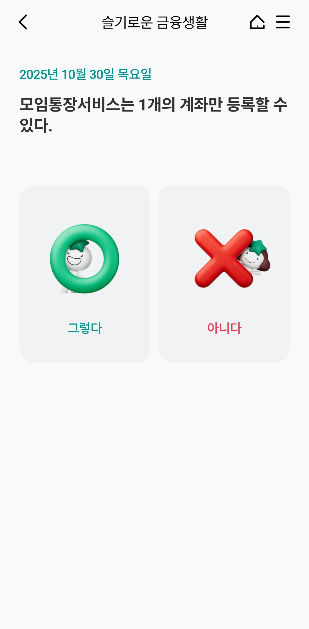 모임통장서비스는 1개의 계좌만 등록할 수 있다.